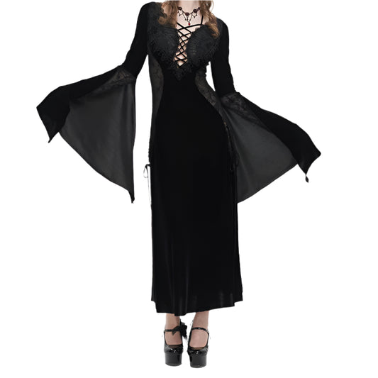 Drusilla Gothic Lace Panel Velvet Dress by Eva Lady