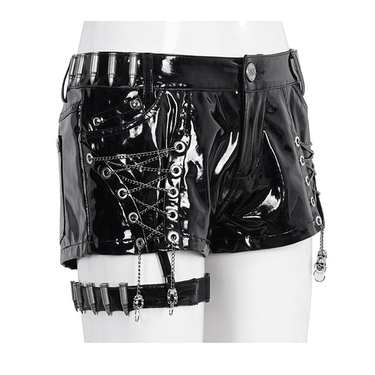 Kiss The Skulls PU Leather Shorts by Devil Fashion