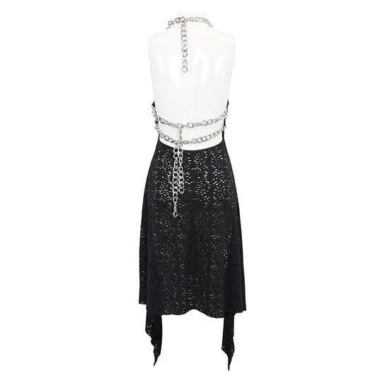 Glam Ghoul Chain Harness Halter Dress by Devil Fashion