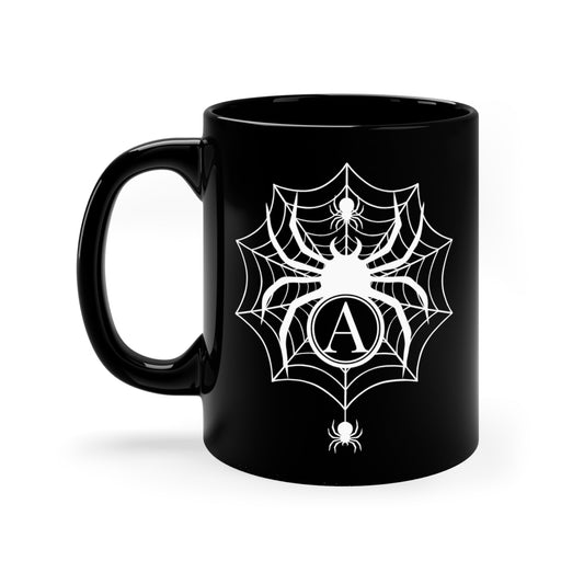 Personalized Letter Big Spiderweb 11 oz. Black Mug by The Dark Side of Fashion
