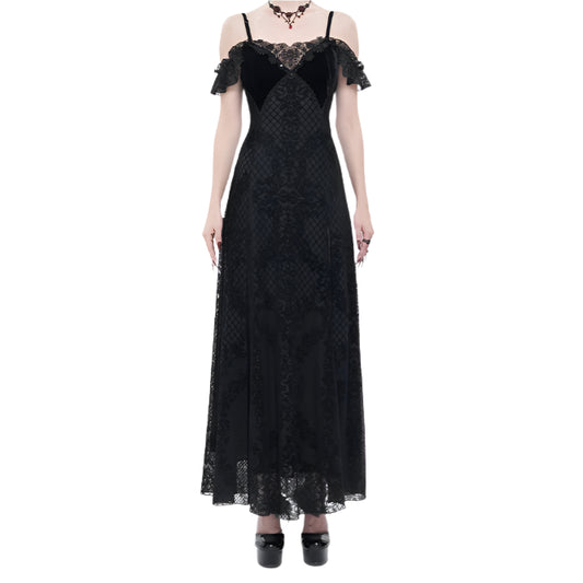 Midnight Feast Gothic Lace Velvet Dress by Eva Lady