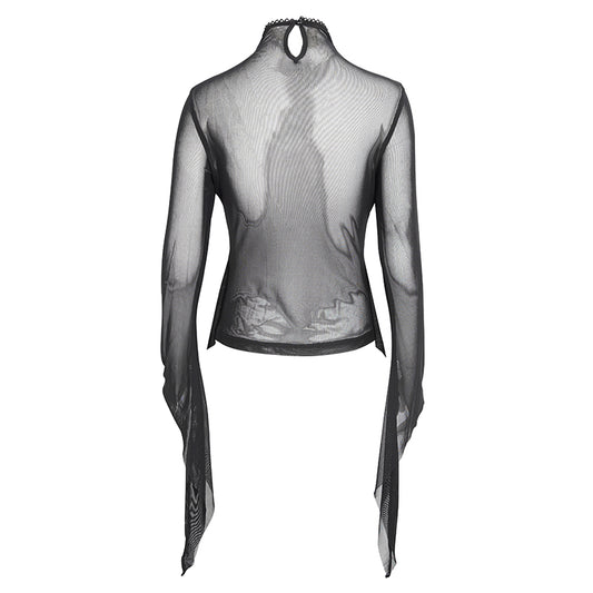 Gothic Dahlia Mesh Sleeve Top by Devil Fashion