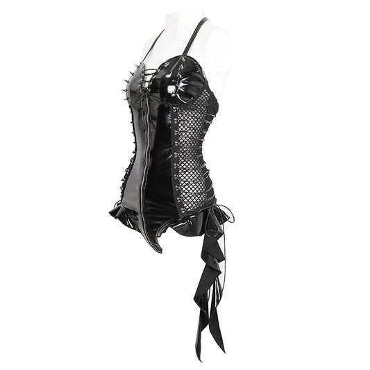 Birdie Gothic Leather Lingerie Bodysuit Top by Devil Fashion
