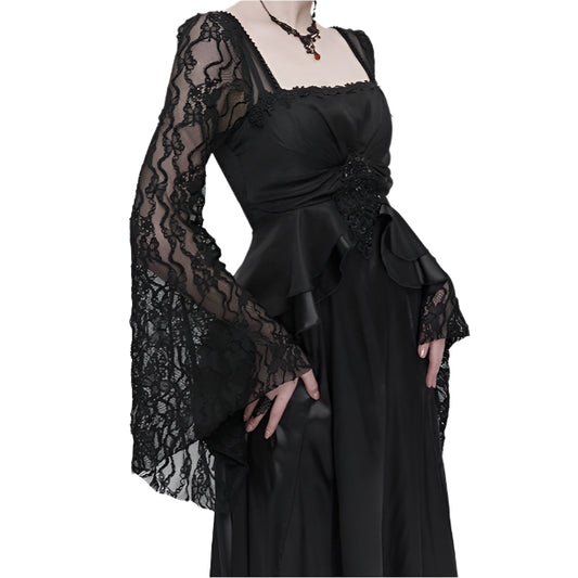 Deadly Celebrations Lace Sleeve Black Dress by Eva Lady