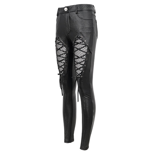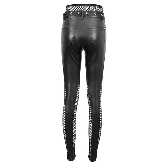Rejects Fishnet Panel Faux Leather Leggings by Devil Fashion