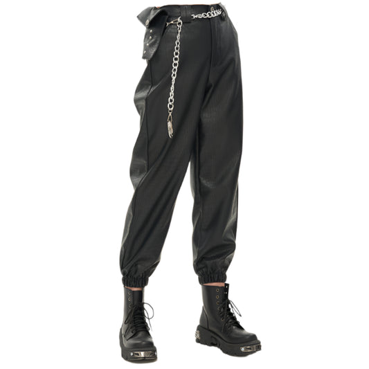 Moonlit Maven Lace Up Faux Leather Pants by Devil Fashion