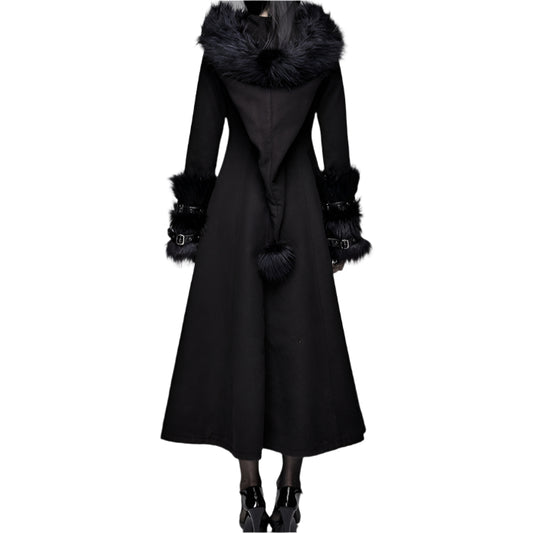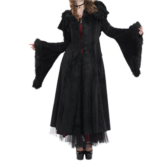 Morbid May Hooded Faux Fur Shawl Coat by Devil Fashion