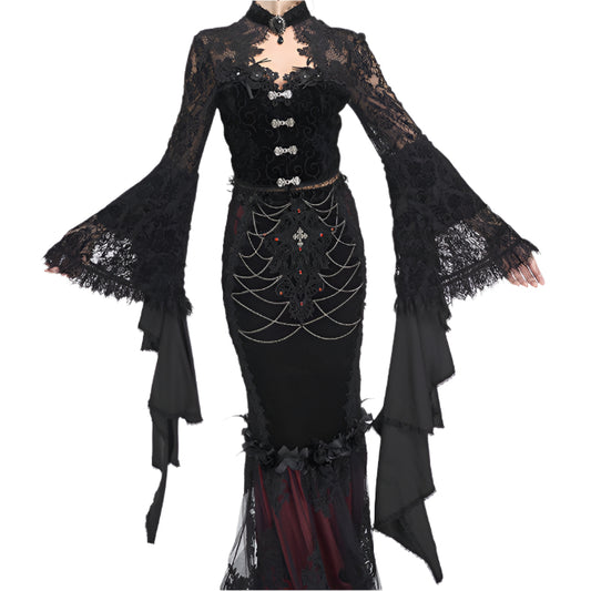Weeping Beauty Lace Bell Sleeve Gothic Cropped Jacket Top by Eva Lady