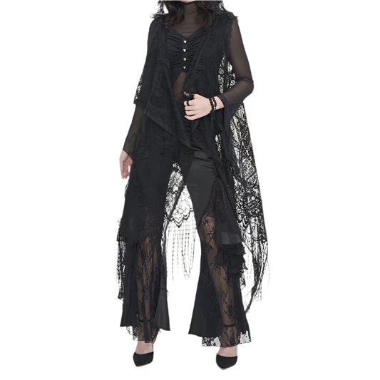 Cordelia Gothic Lace Hooded Tassle Vest by Devil Fashion