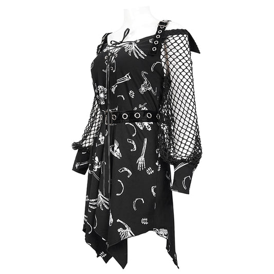 Graveyard Bones Fishnet Sleeve Dress by Devil Fashion