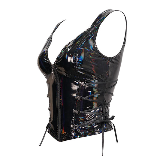 Reach For The Dead Faux Leather Vest Top by Devil Fashion