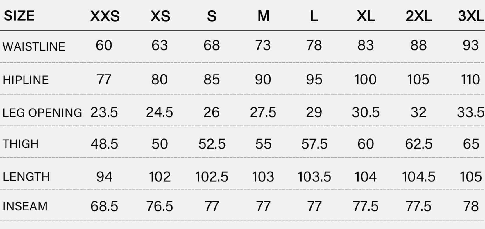 SIZE CHART (cm)