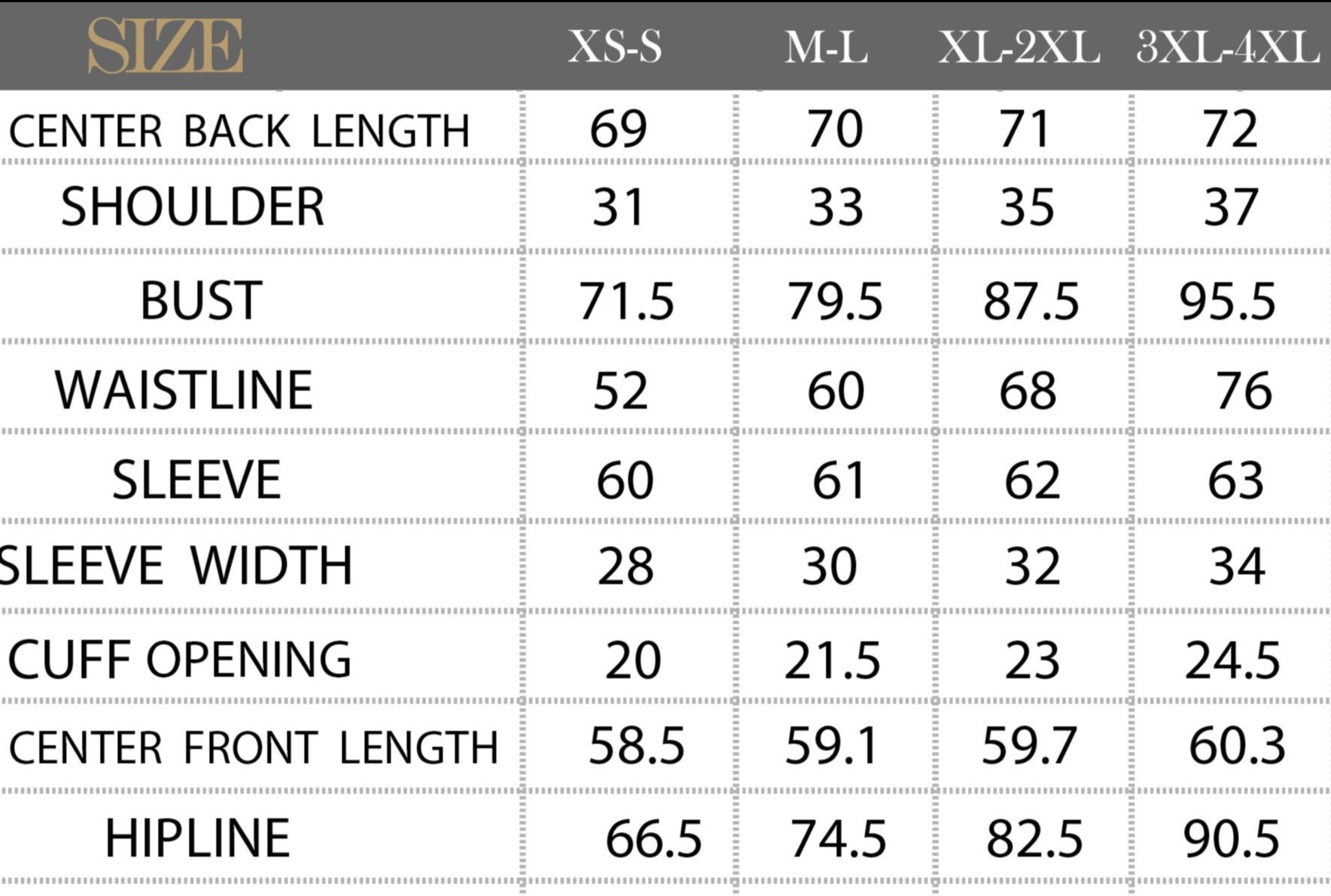 SIZE CHART (cm)
