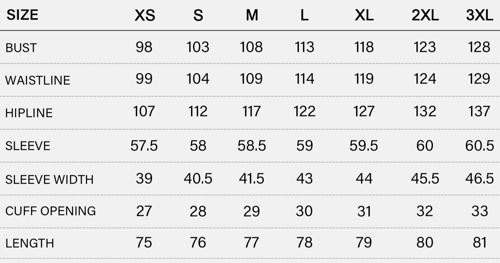 SIZE CHART (cm)