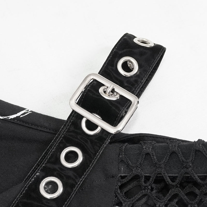 Zaria Gothic Harness Black Sleeve Top by Devil Fashion
