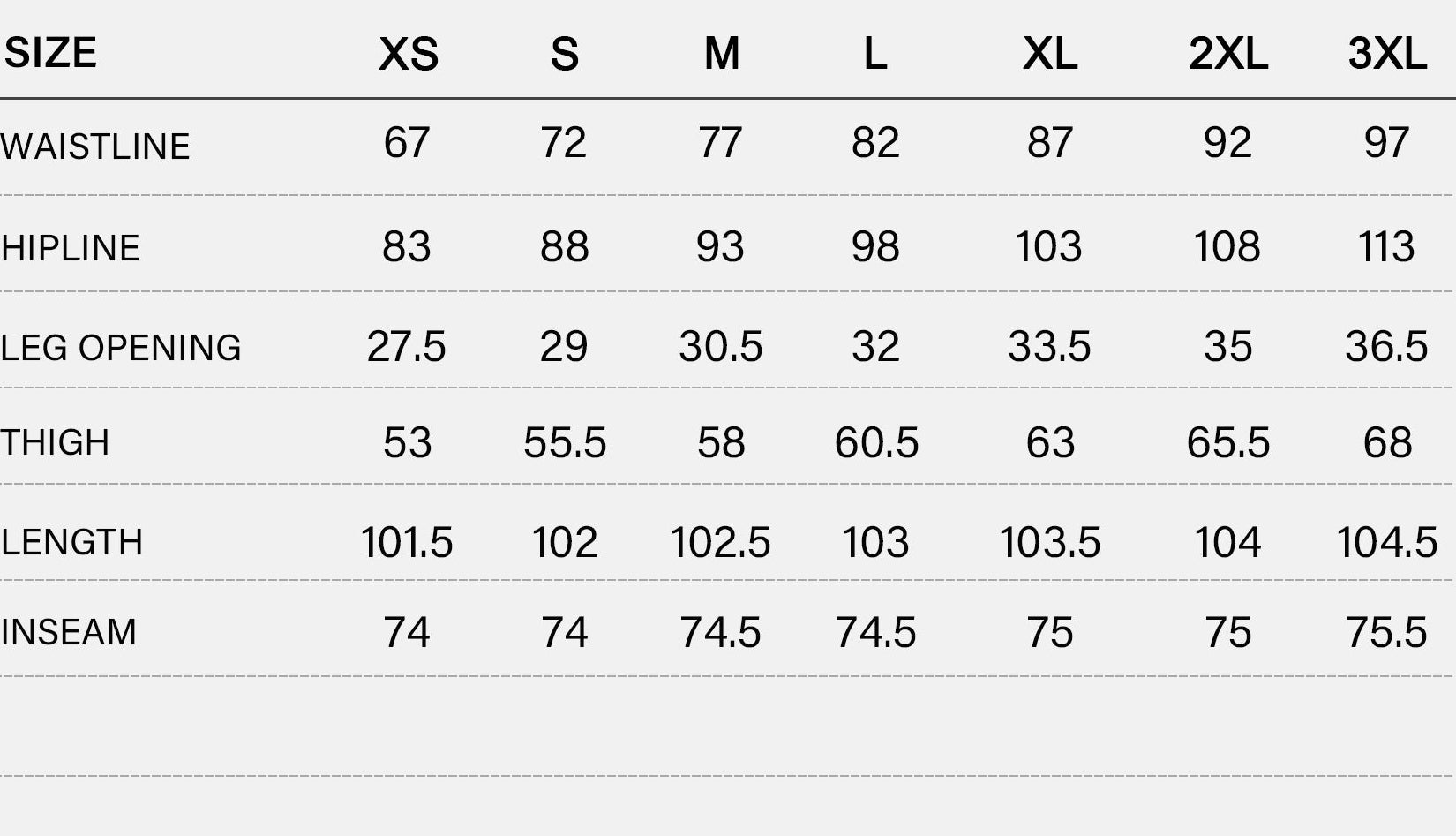 SIZE CHART (cm)