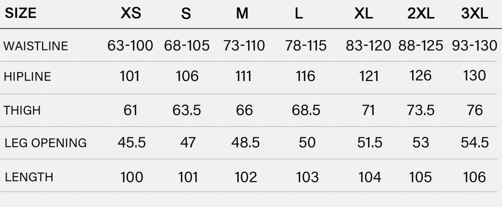 SIZE CHART (cm)