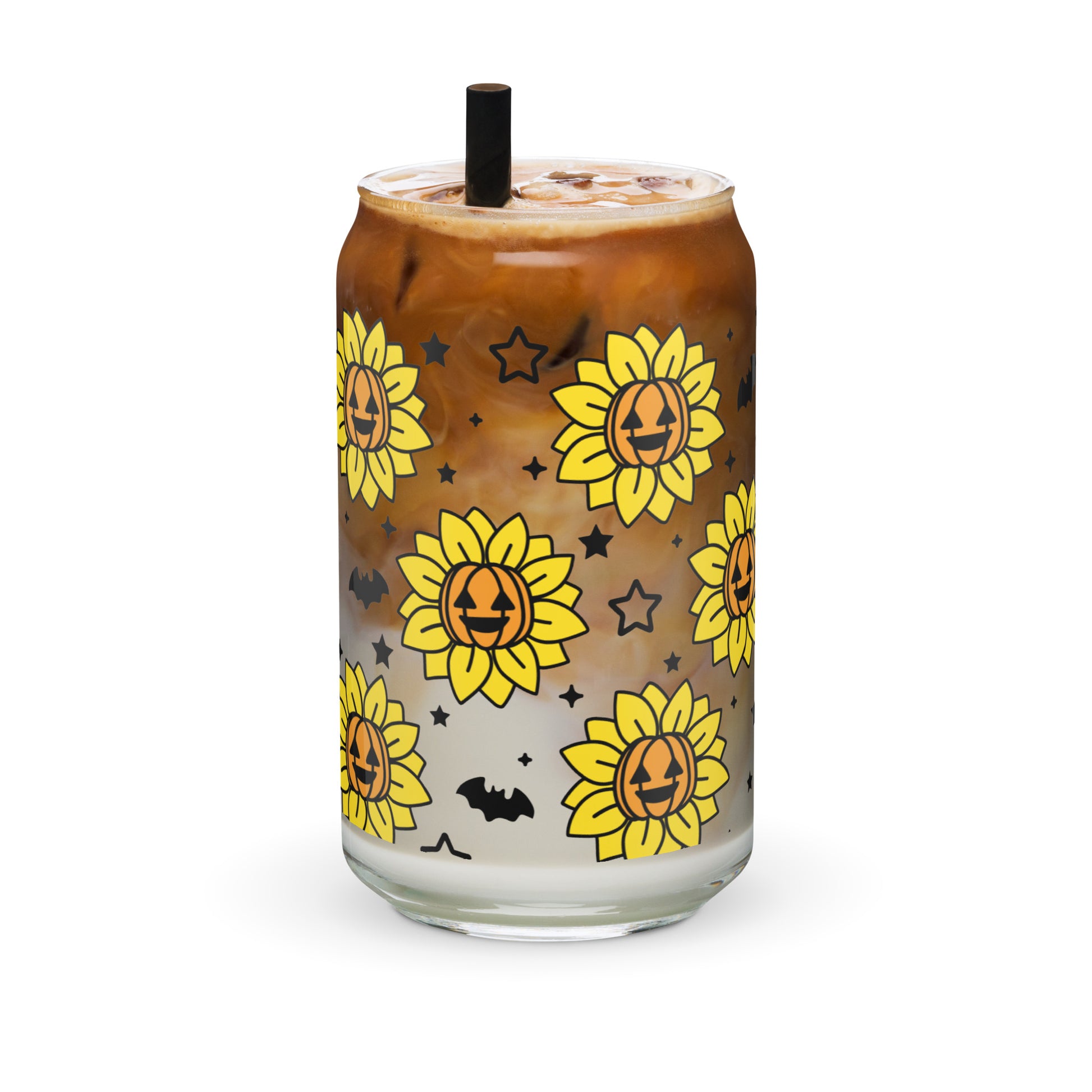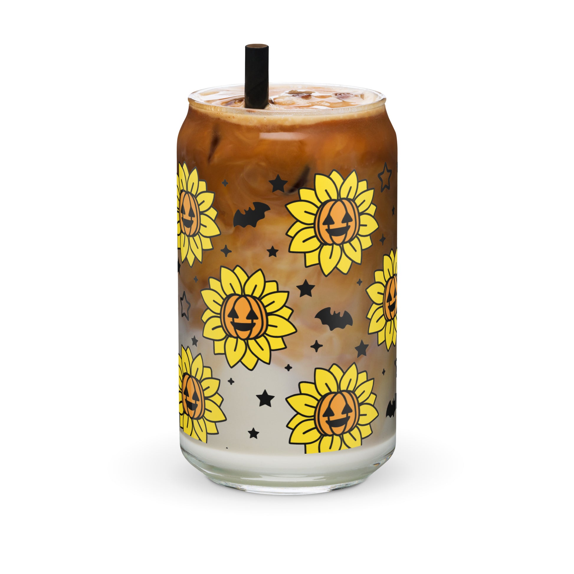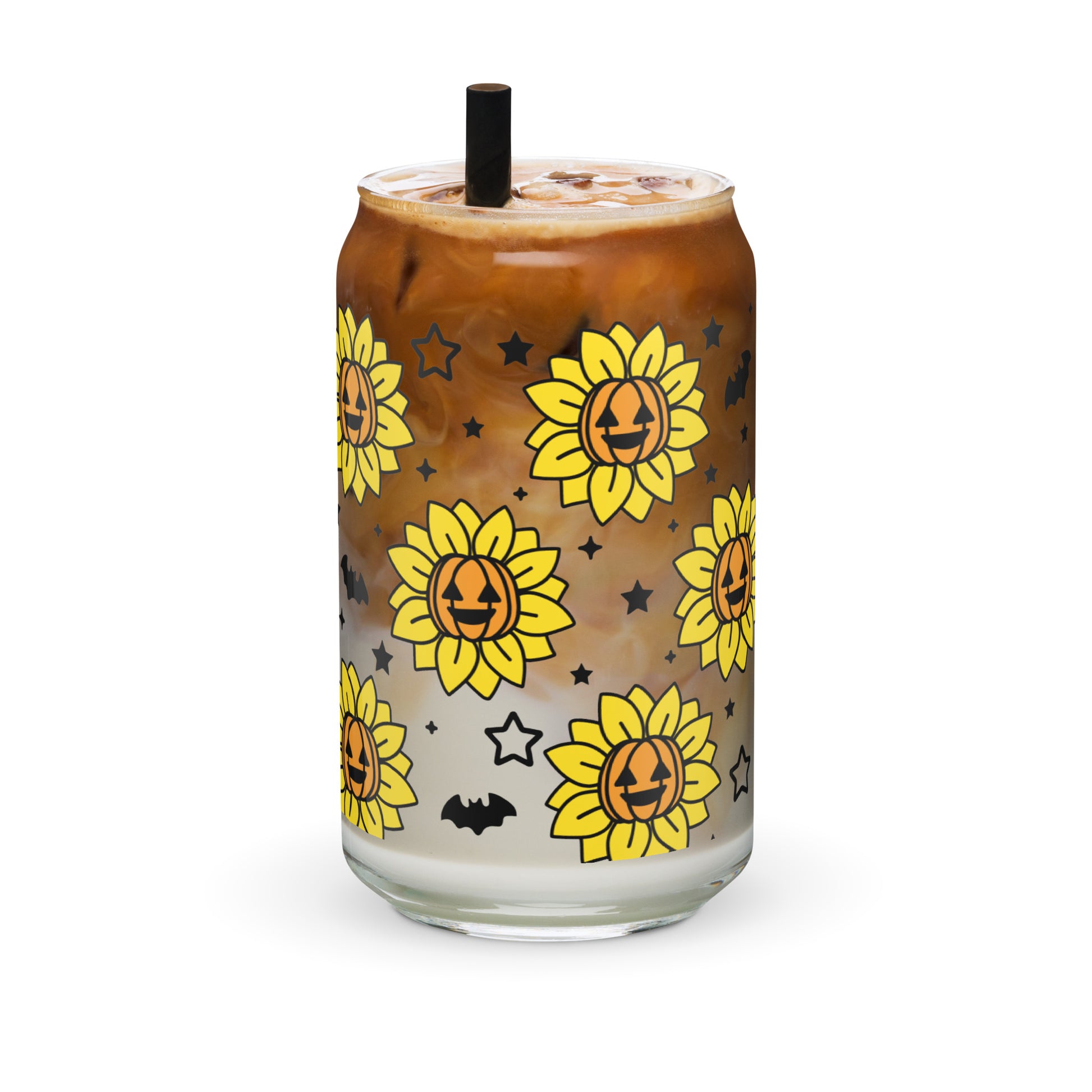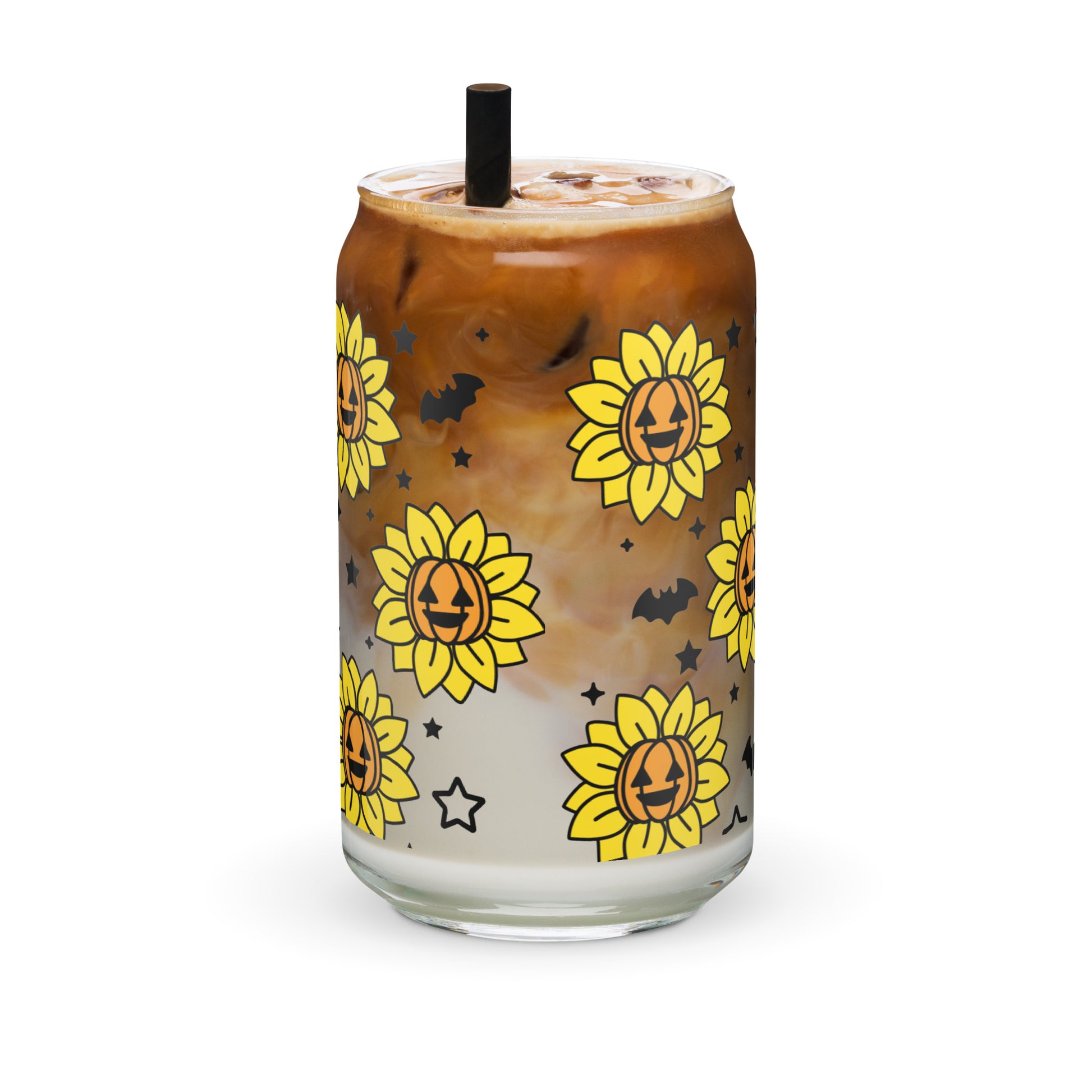 Happy Flower Pumpkins & Bats Glass Can Cup by The Dark Side of Fashion