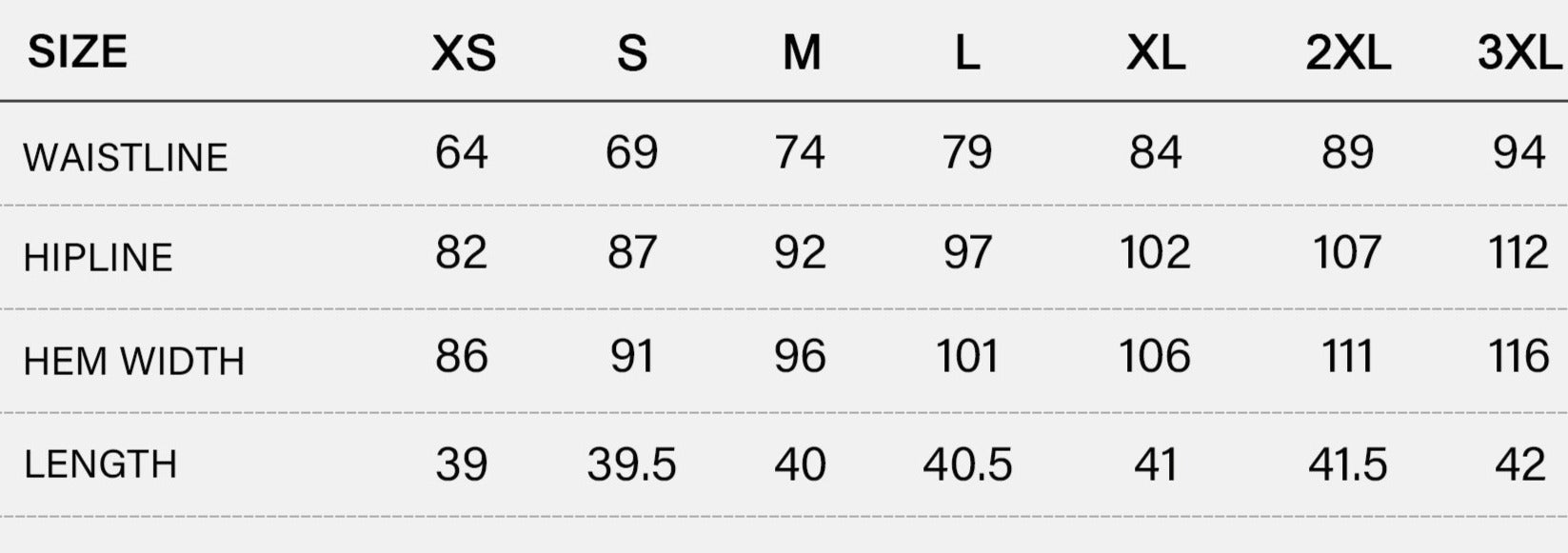 SIZE CHART (cm)
