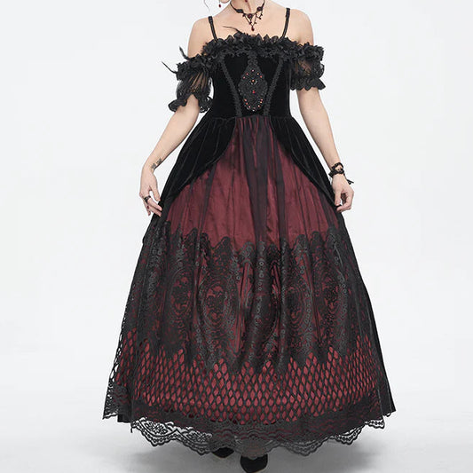 Everly Gothic Red Lace Bell Sleeve Velvet Top by Eva Lady