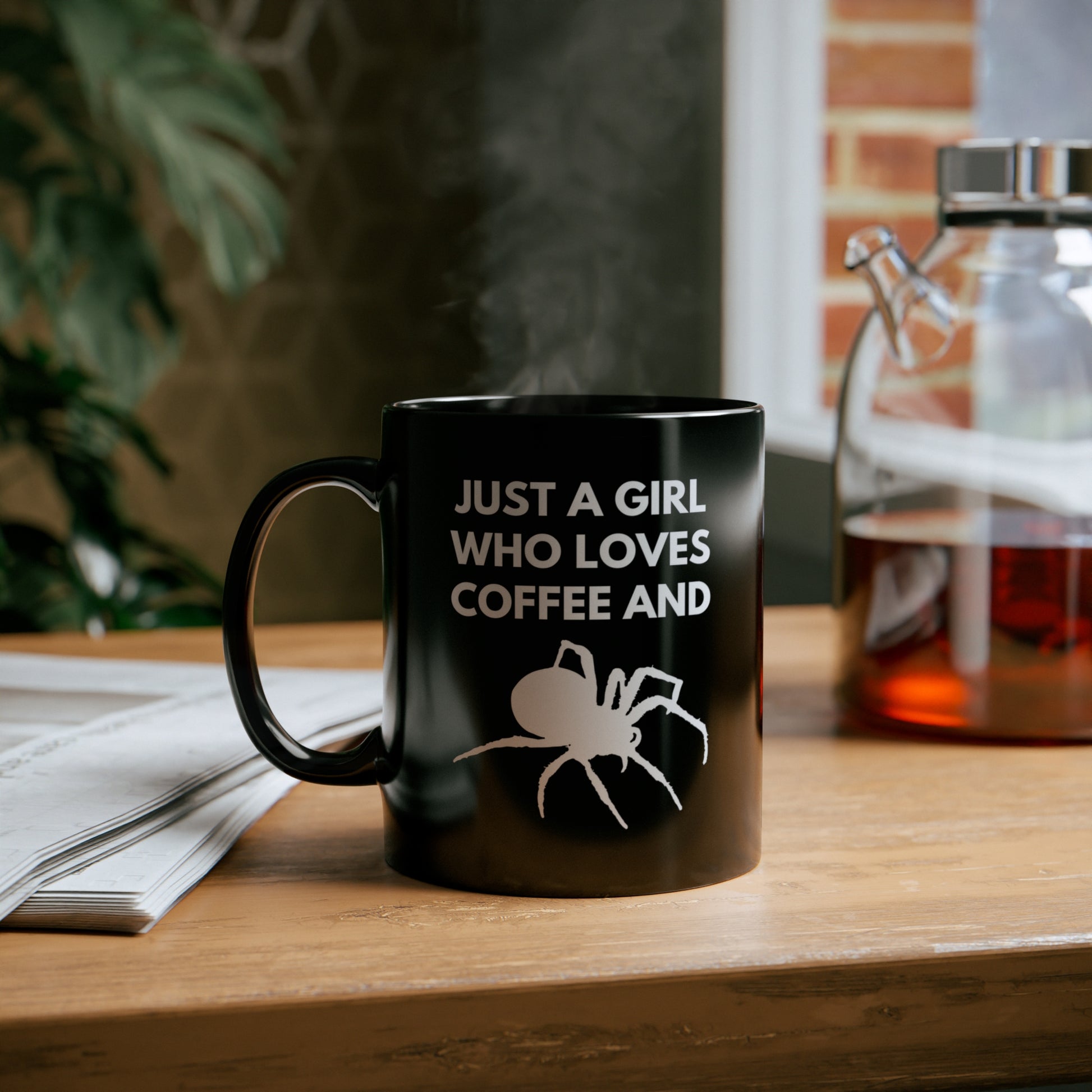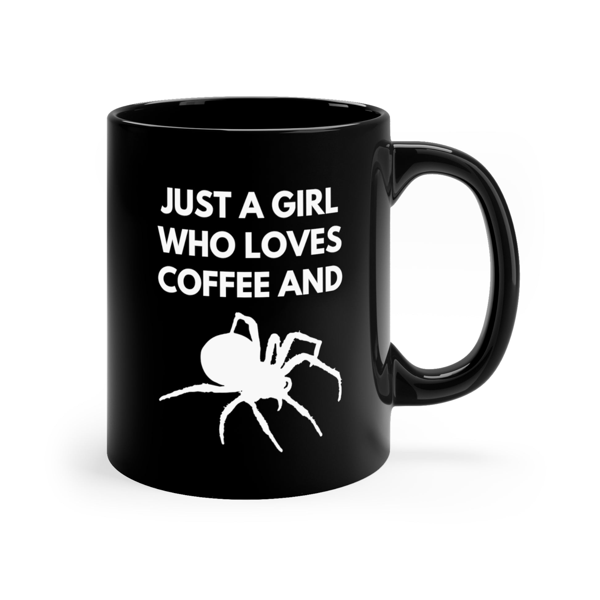 A Girl Who Loves Coffee and Spiders 11 oz. Black Mug by The Dark Side of Fashion