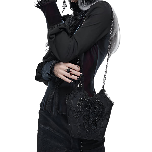 Love & Demise Beaded Chain Strap Black Gothic Bag by Devil Fashion