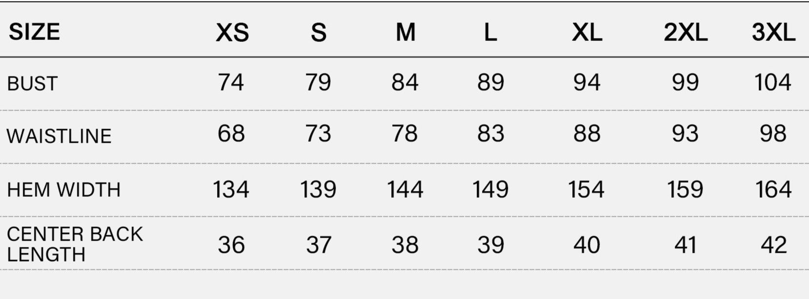SIZE CHART (cm)