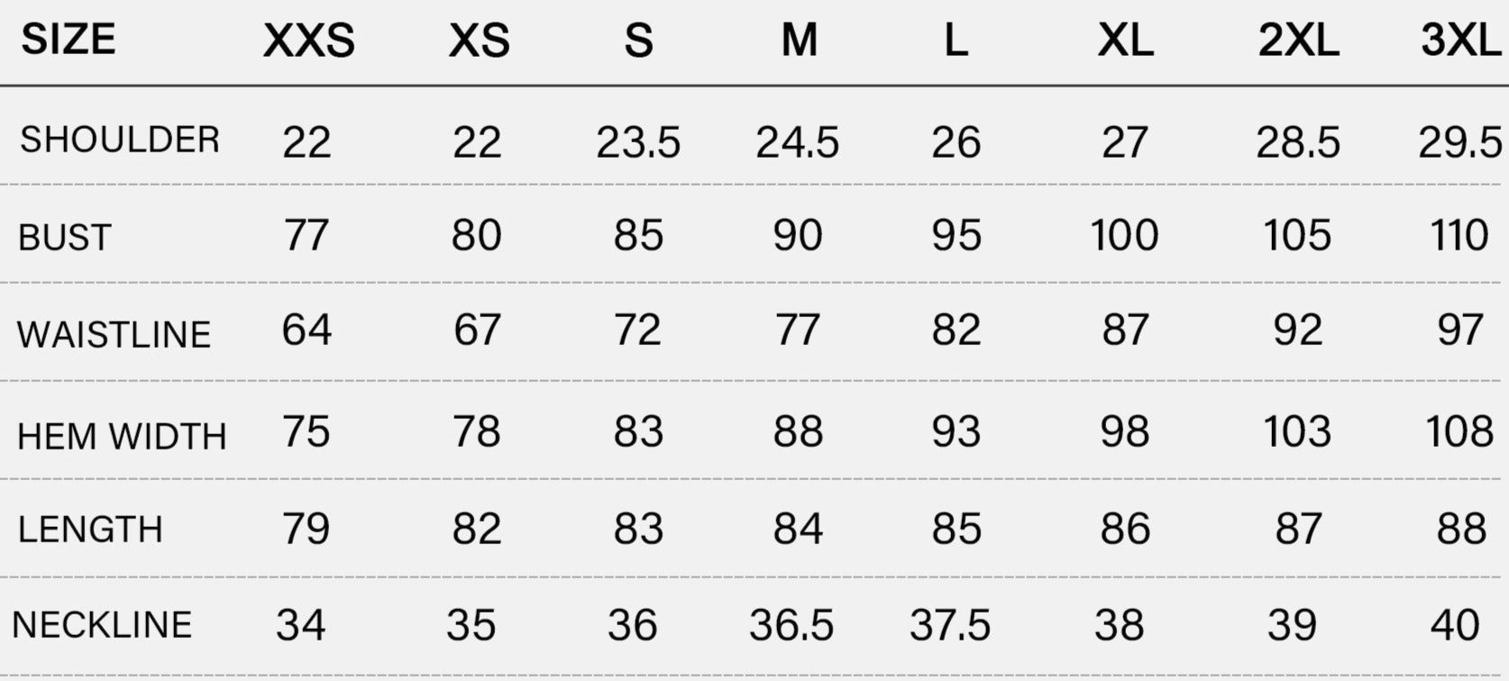 SIZE CHART (cm)