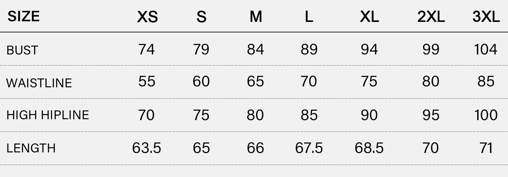 SIZE CHART (cm)