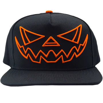 It's halloween everyday with this Pumpkin Basesball Hat, featuring an embroidered jack o lantern face on the front, and "trick or treat" printed on the brim with orange stitching detail.