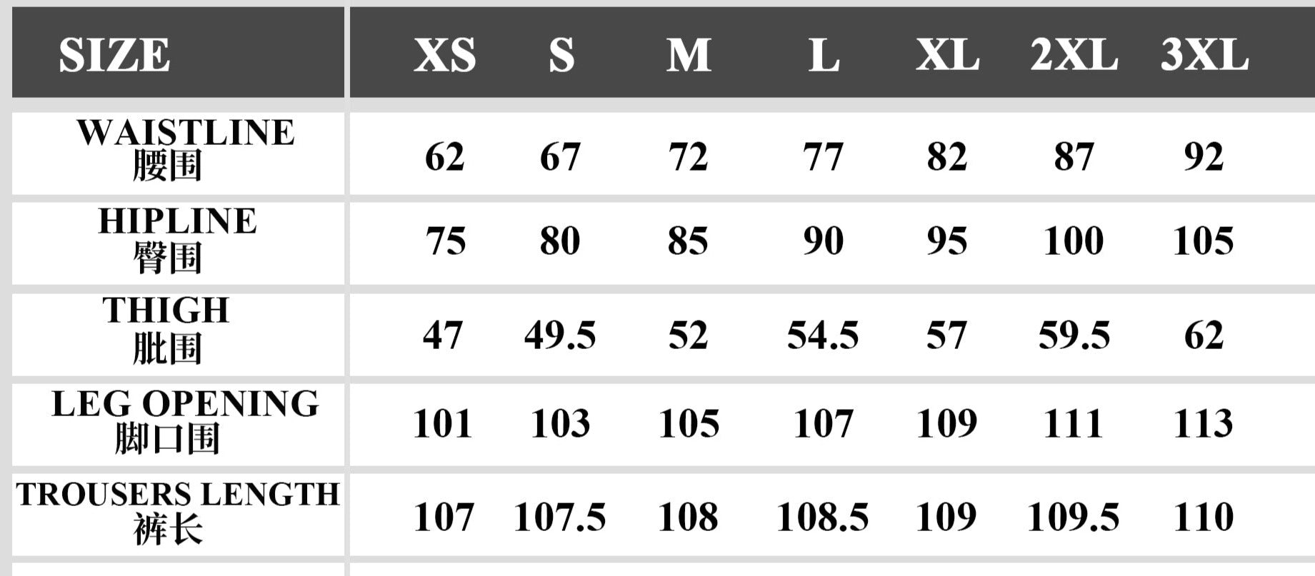 SIZE CHART (cm)