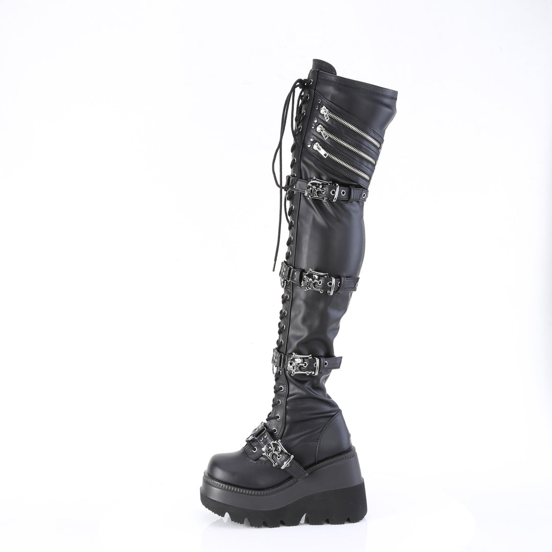 SHAKER-420 Skull Platform Thigh High Boots by Demonia