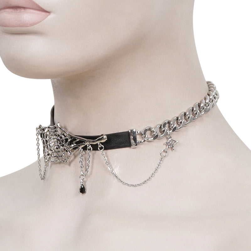 Spiderweb Faux Leather Chain Choker by Devil Fashion