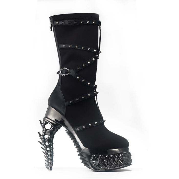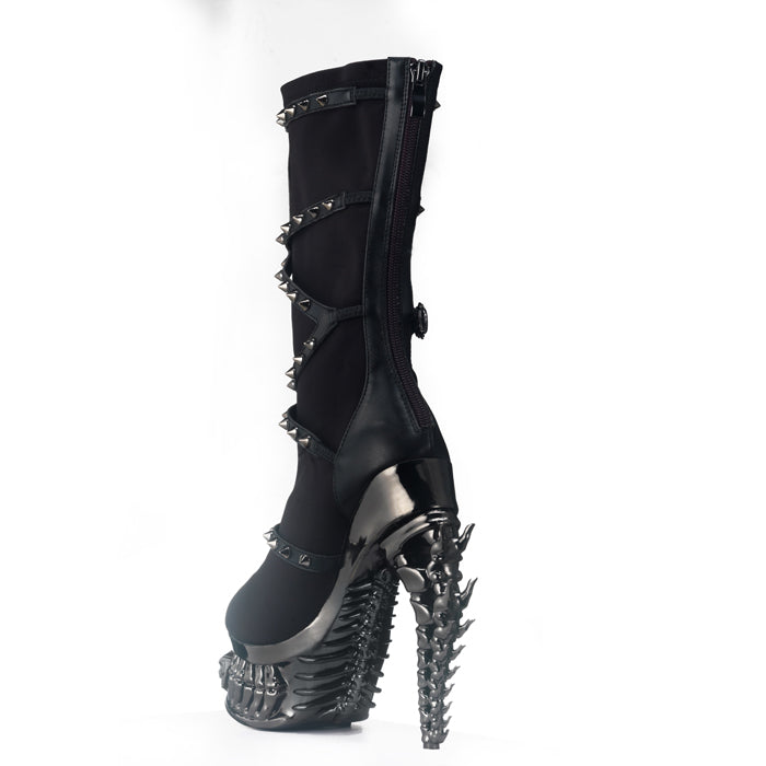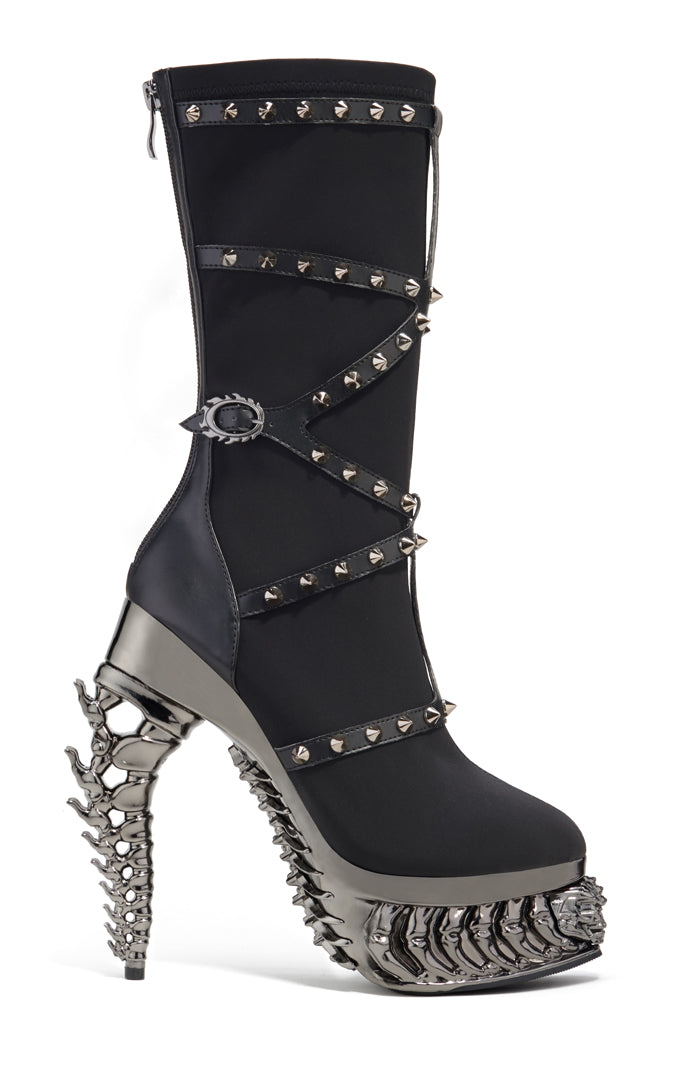 Amazing details that look even better in person! These beauties have a 5″ heel with a matching 1.5″ skeleton platform and gunmetal coated mini spikes sewed onto the straps.