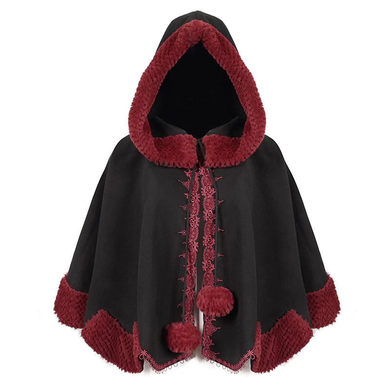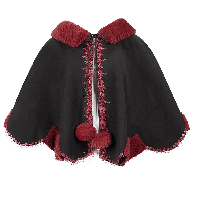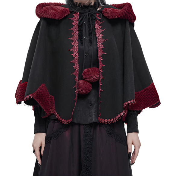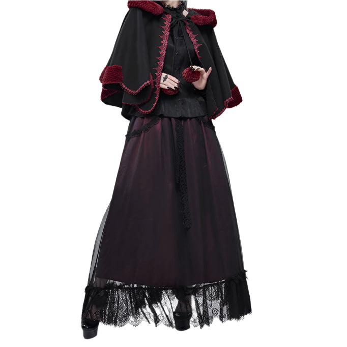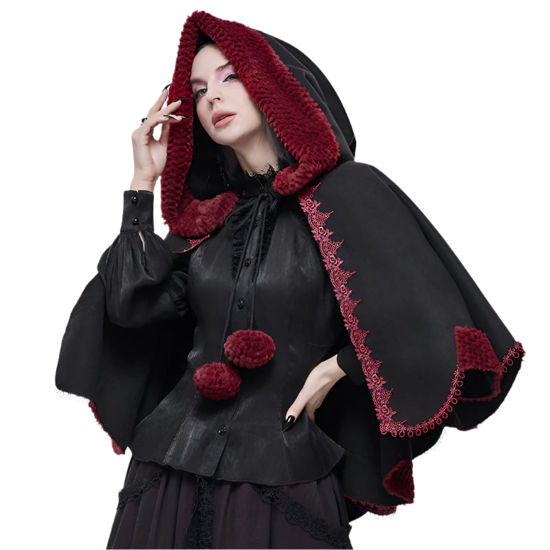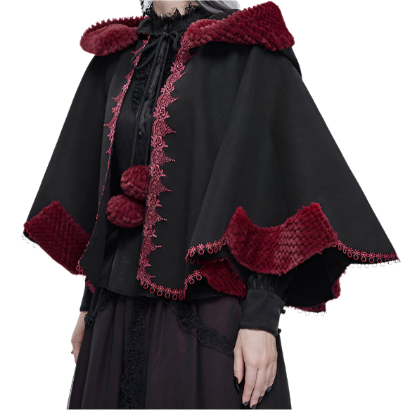 Thorns Of A Rose Gothic Red Faux Fur Shawl Cape by Devil Fashion