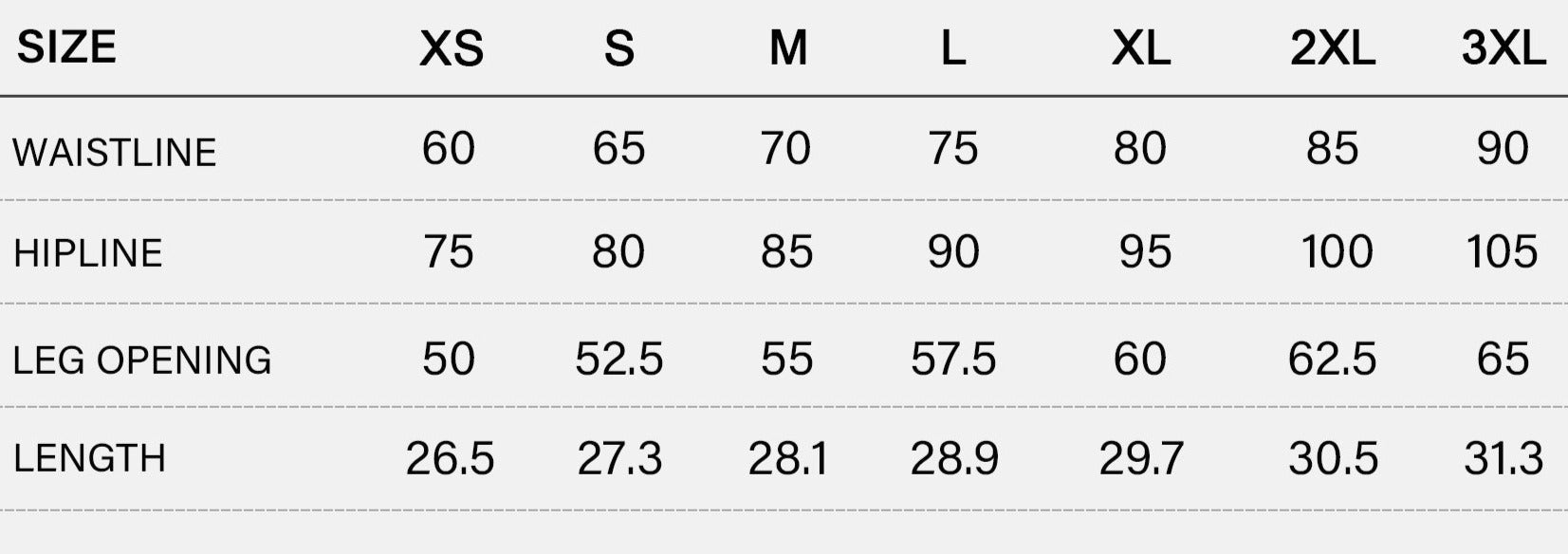 SIZE CHART (cm)